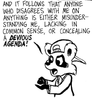 Ozy Sein voller Name ist Ozymandias J. Llewellyn. Er ist ein kleiner grauer Polarfuchsjunge und ist ungefähr 10 Jahre alt. Er hat für ein Kind in seinem Alter eine sehr ungewöhnliche philosophische Betrachtungsweise seiner Umgebung; manchmal scheint er nicht von dieser Welt zu sein. Er ist fast immer eine sehr gelassen Persönlichkeit, auch dann wenn eine Portion Zynismus eher sinnvoll wäre. Dies führt des öfteren zu, teilweise sehr unangenehmen, Konsequenzen. Trotz alledem ist er der Vorzeigecharakter für Zen, zumindestens in diesem Comic. |