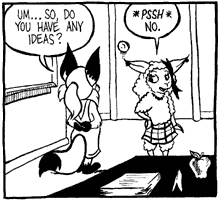 Millie Ihr voller Name ist Millicent Mehitabel Mudd. Ein kleines, rotes Fuchsmädchen, ebenfalls 10 Jahre alt. Millie ist ziemlich aufgedreht und hält sich selten an "normale" Konventionen. Nebenbei ist sie recht intelligent und teilweise einzelgängerisch veranlagt. Sie ist nicht "cool", erzählt aber jedem, das sie das überhaupt nicht stört. Sehr impulsiv. Millie ist Ozys bester Freund; sie verstehen sich gegenseitig gut, zumindestens soweit wie sich solch unterschiedliche Charaktere überhaupt verstehen können. |